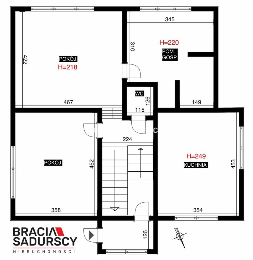 Układ pomieszczeń pozwala na ewentualne wyodrębnienie 3 niezależnych mieszkań.